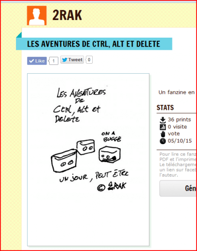 j’ai posté « anonymement » les gags des aventures de Ctrl, Alt et Delete chez 8 pages comics (des fanzines à imprimer chez soi » et ça se diffuse gentillement !